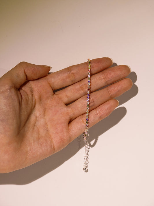 Peak Summer - Rainbow CZ Sparkling Tennis Bracelet With Adjustable Chain