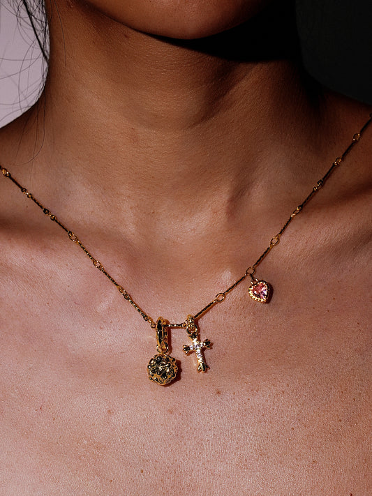 The Pink Promise - Vintage Multi Charm Necklace with Heart&Cross&Bubble