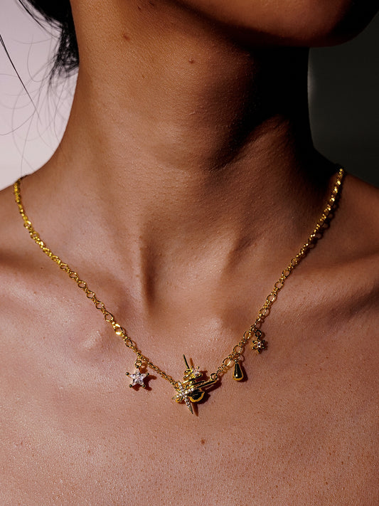 The Orbit - Starburst And Star And Teardrop Charming Necklace