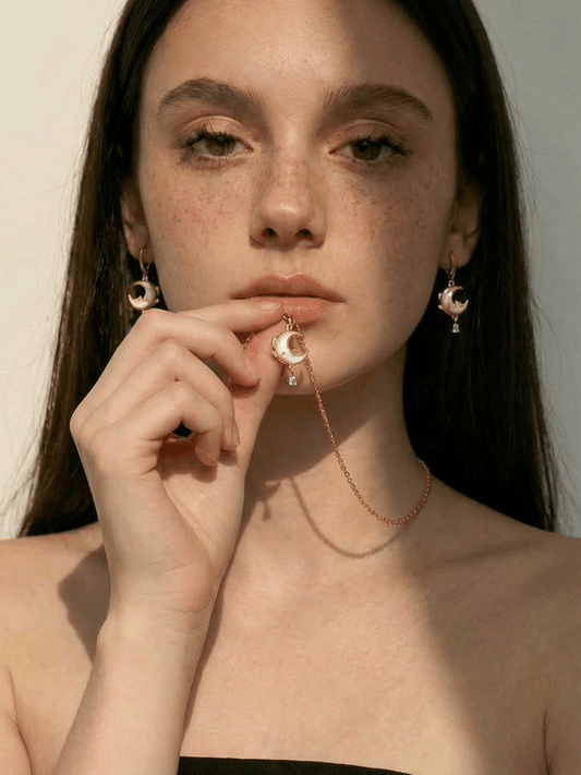 18K Gold Plated Moonstone Rose Moon Earrings