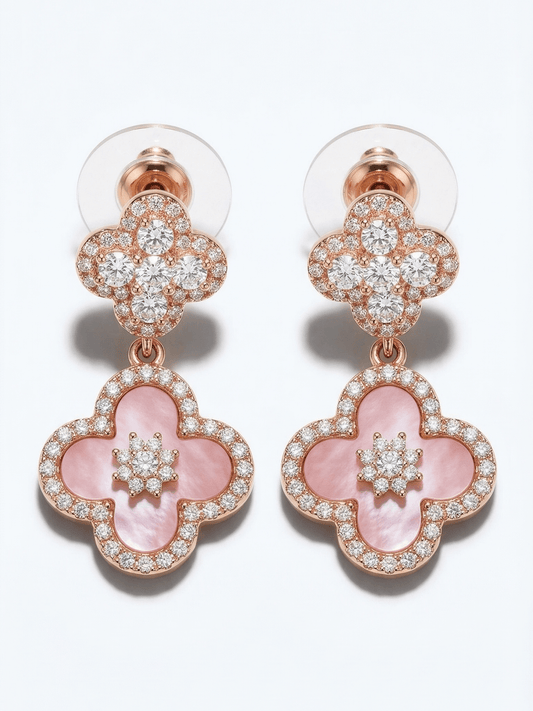 18K Rose Gold Plated Lucky Leaf Shell Pearls Pendant Earrings