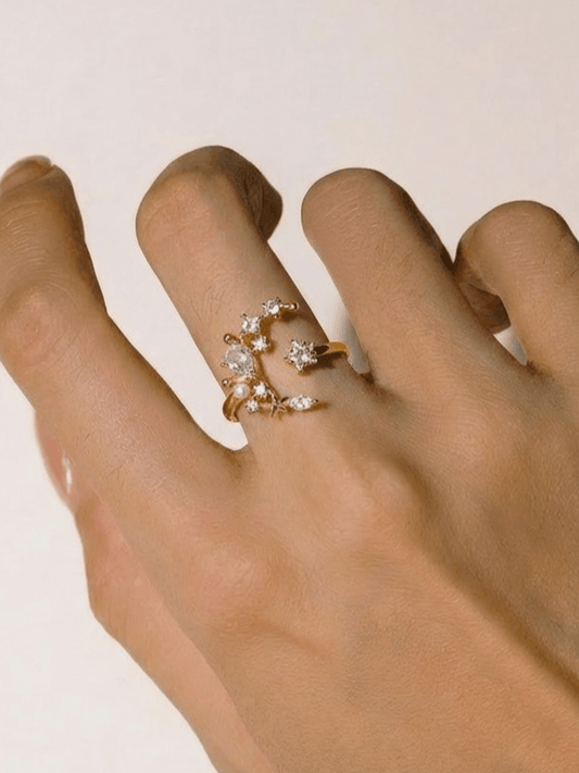 14K Gold Plated Moon Star Ring