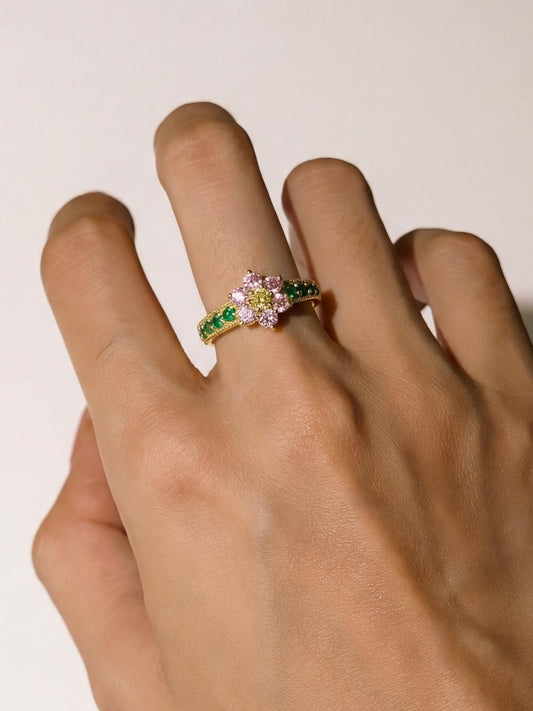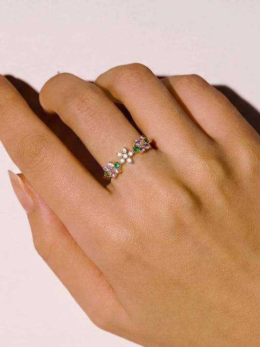 18K Gold Plated Pink Floral Ring