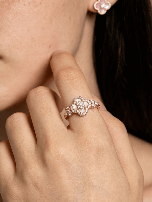18K Rose Gold Plated Lucky Leaf Shell Pearls Ring