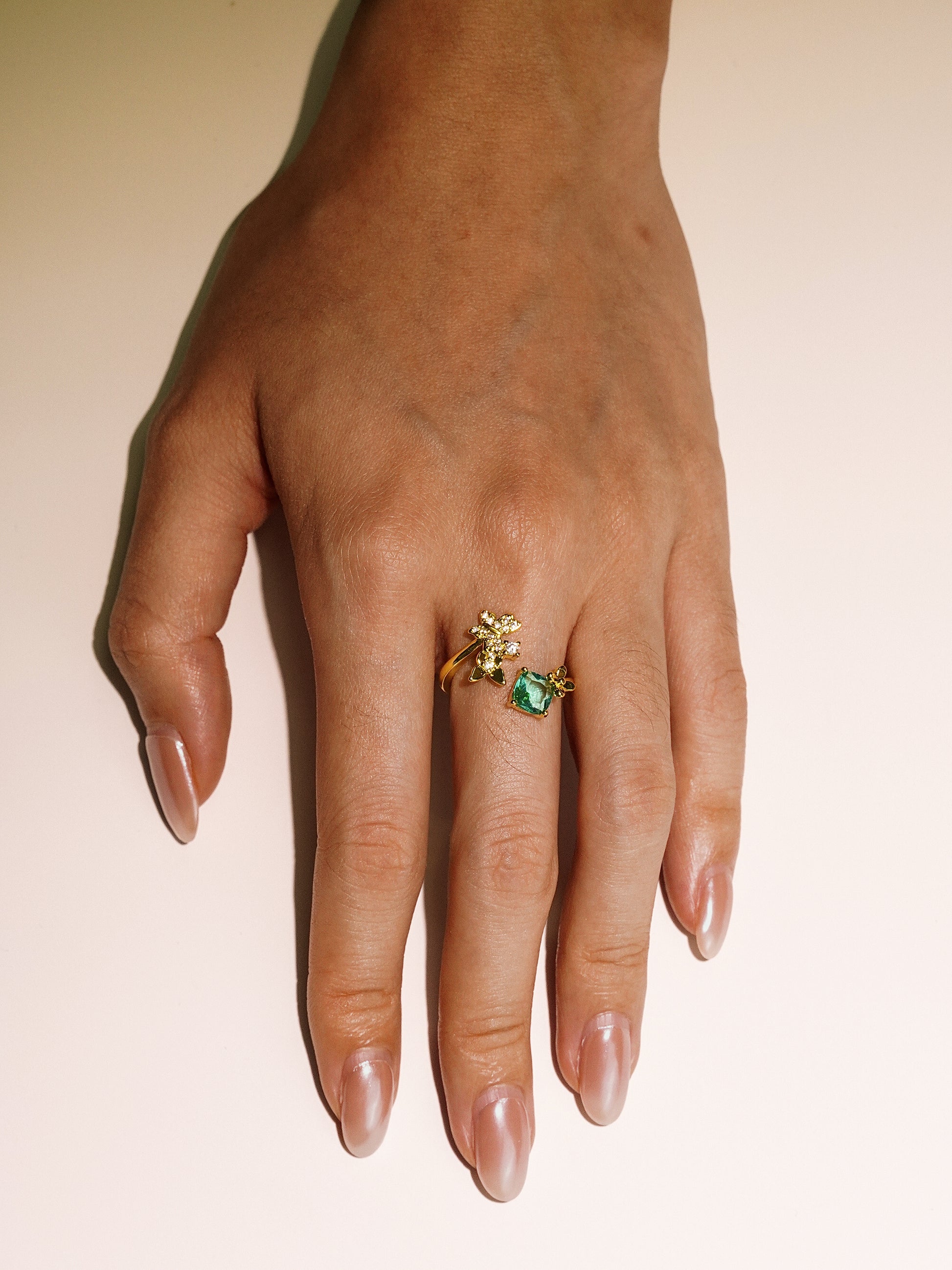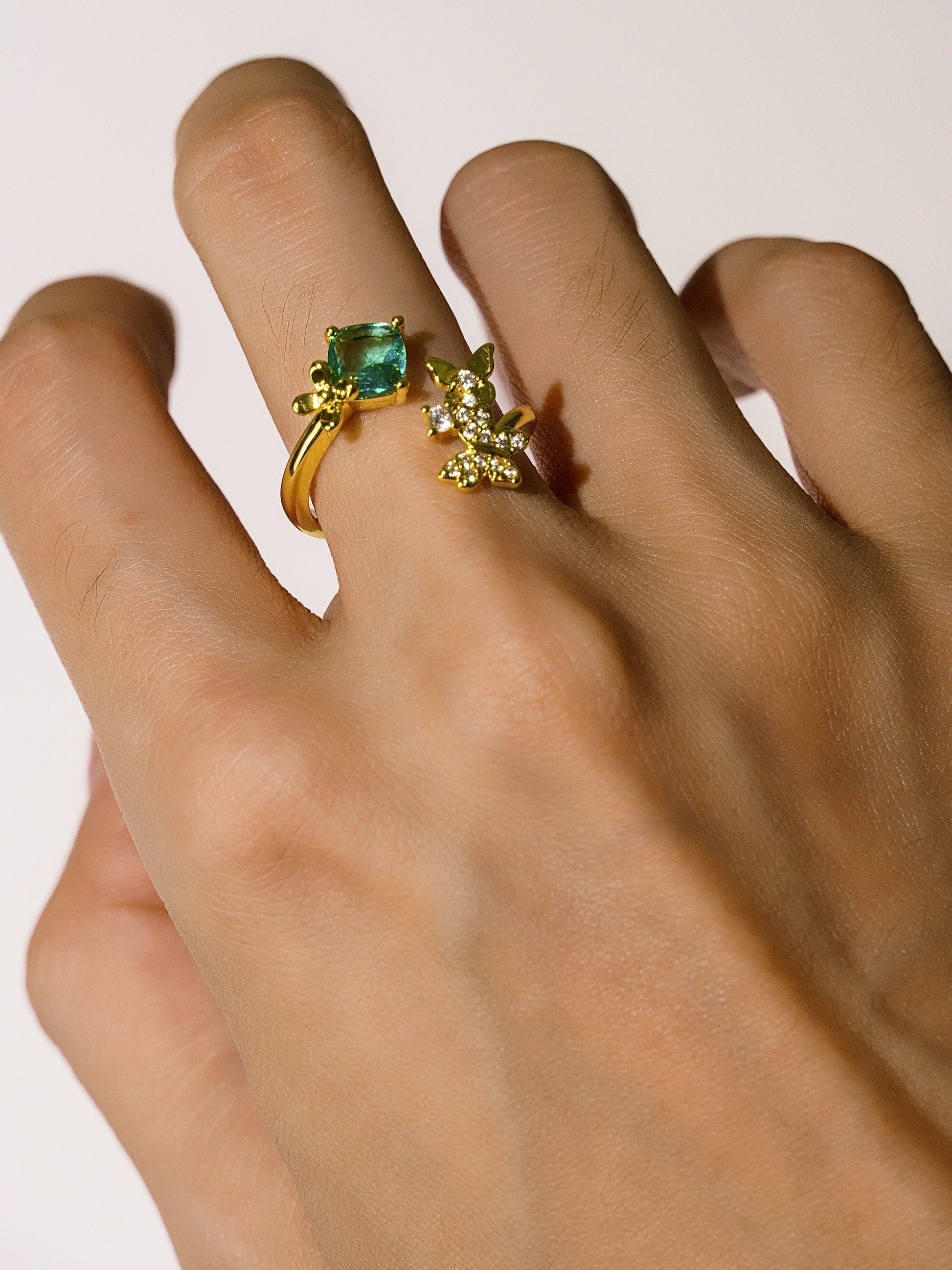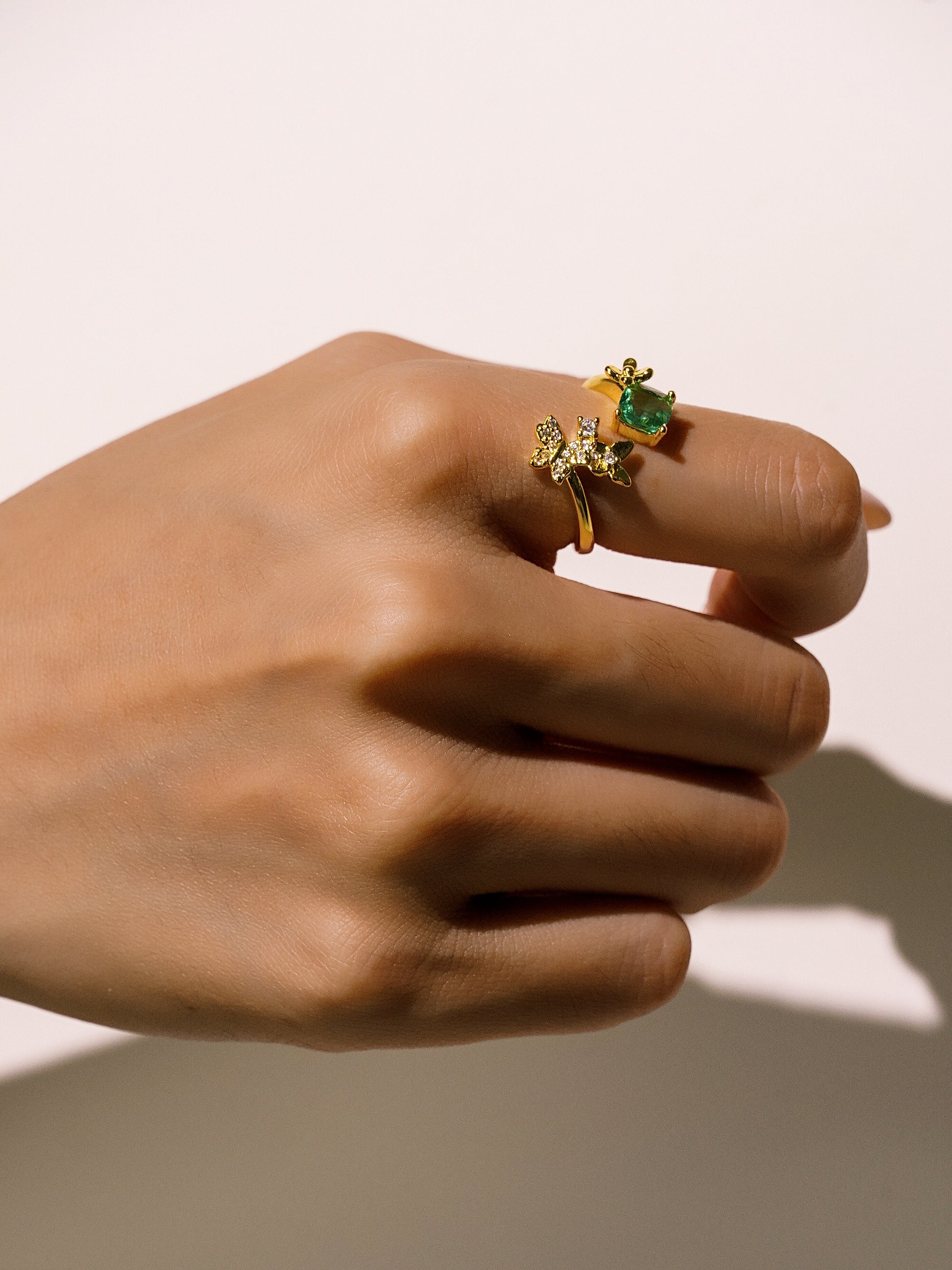 This ring is BEAUTIFUL. I've bought two versions: one gold and one silver. I love them both!! I wore the silver one for a couple of months and it never turned finger green. It was so delicate and beautiful, but it was too small for my middle finger, too big for my pinky, and I already have...